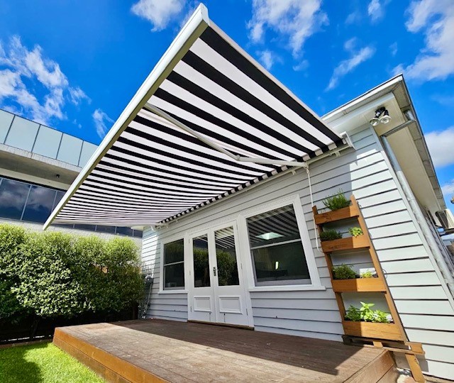 Semi-cassette awning with sylish wide front bar and extruded powder-coated aluminium hood to compliment one of our most popular awnings.